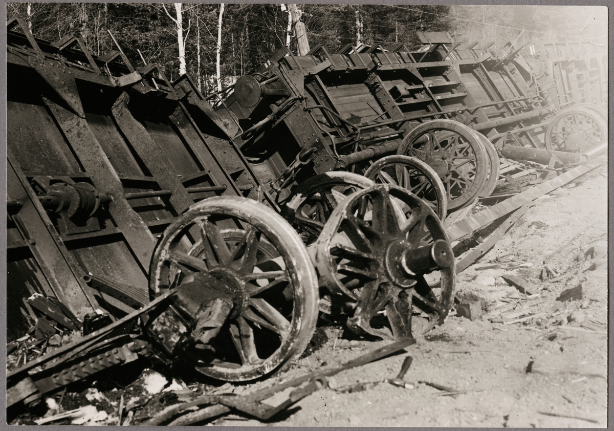 Titel: Godsvagnar som har vällt mellan Gastsjön och Kälarne i Jämtland på 1920-talet.