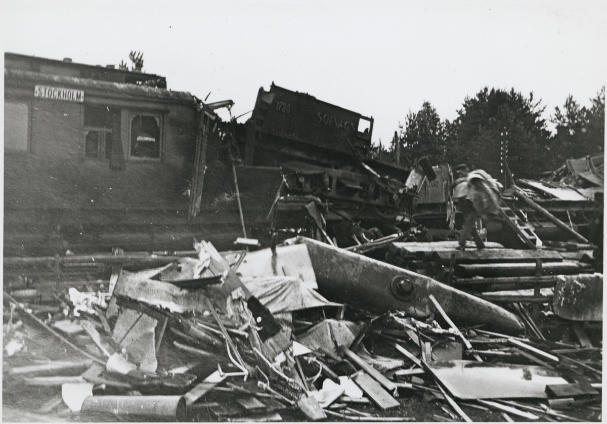 Olycksplatsen i Malmslätt där Statens Järnvägar, SJ Ao1 1723 och SJ Ao4 2002 är några av de drabbade vagnarna vid kollisionen.