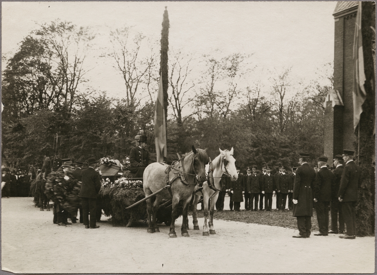 Begravningsprocession utanför Matteuskyrkan, i Norrköping.