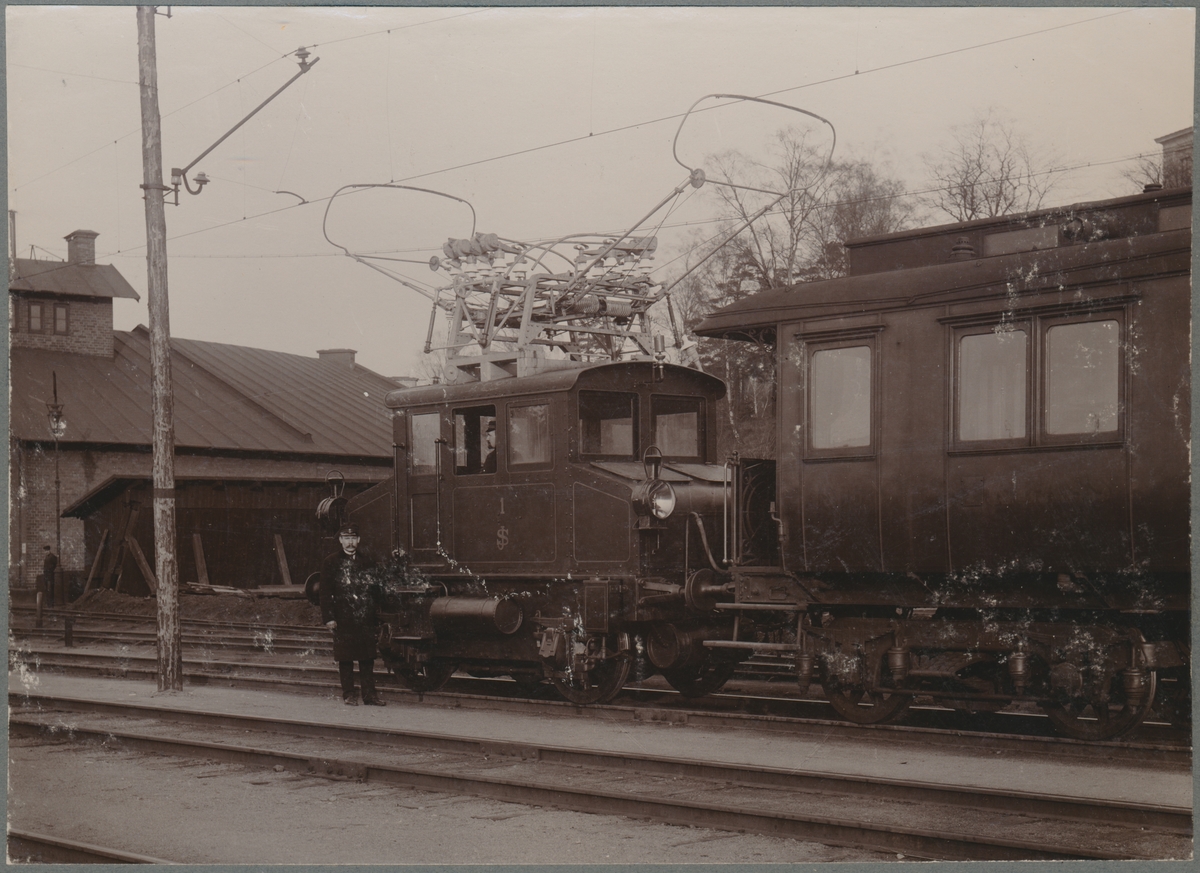 Westinghouse-lok. Statens Järnvägar SJ ellok 1 och personvagn Bo3 1506.