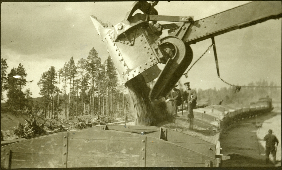 Räveln. Statens Järnvägar, SJ. Gruslastning i Rävelns grustag.