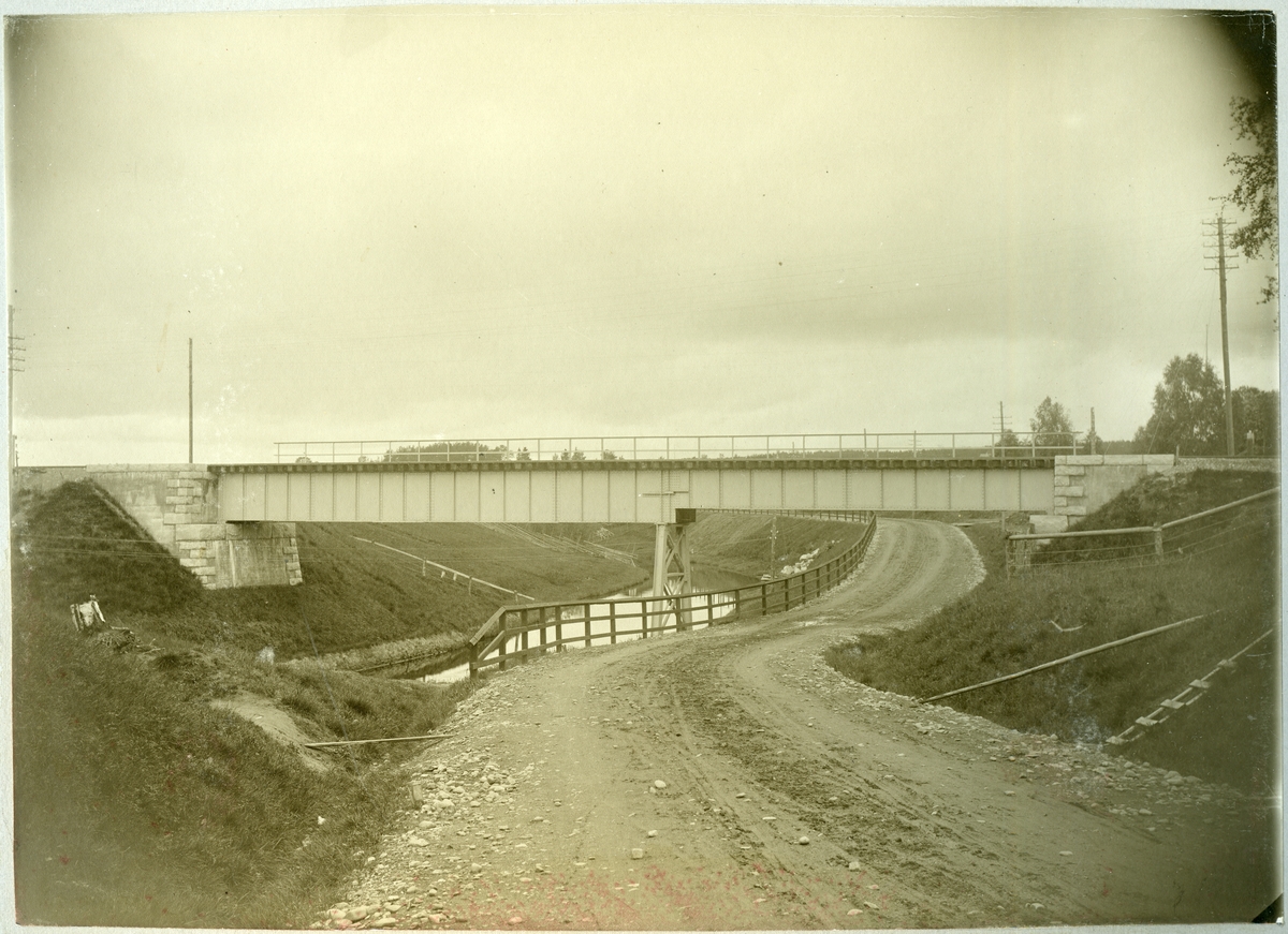 Klintfors. Statens Järnvägar, SJ. Bro över och vägport vid Klintforsån i juli 1911. Elektrifierades 1997.