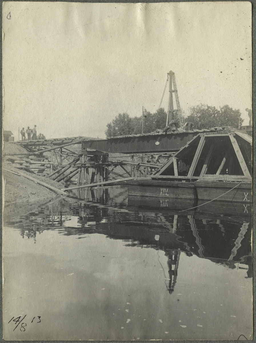 Svartå Grindar, ett brospann monteras med hjälp av pråmkran.