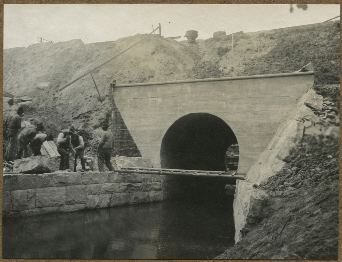 Dubbelspårsbyggnaden mellan Alingsås - Olskroken. Lerån på linjen Floda - Lerum. Förlängningen av den gamla kulverten.