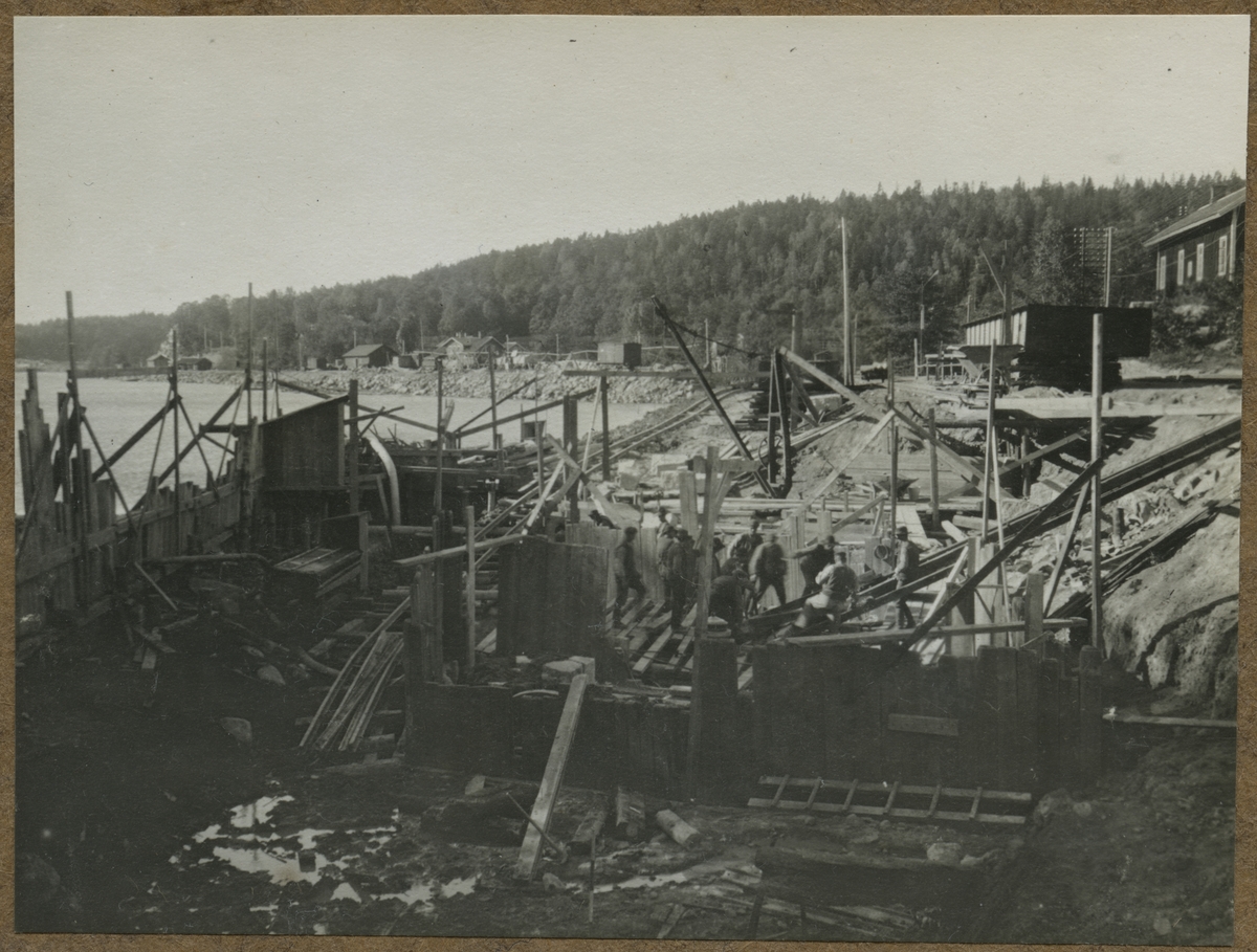 Titel: Dubbelspårsbyggnaden mellan Alingsås - Olskroken. Spåntning och schaktning för nya bron.