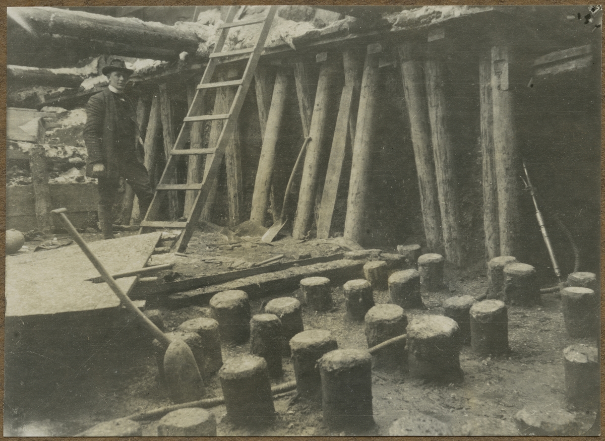 Dubbelspårsbyggnaden mellan Alingsås - Olskroken. Bron över Säveån. pålgrund för nya bron med pålning för gamla fästet i bakgrunden.