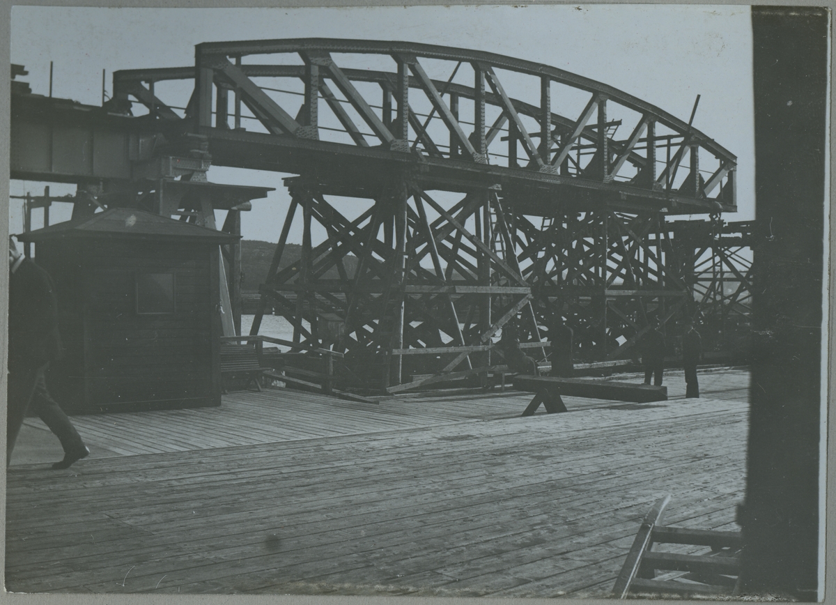 Brobygge över Göta Älv, första spannet under uppläggning.