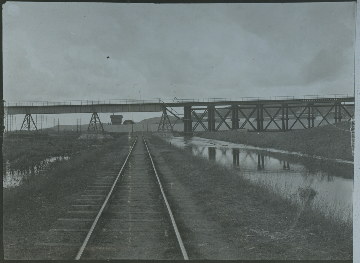Titel: Provisorisk viadukt vid Göteborgs slakthus och över Säveån. ( Olskroken )