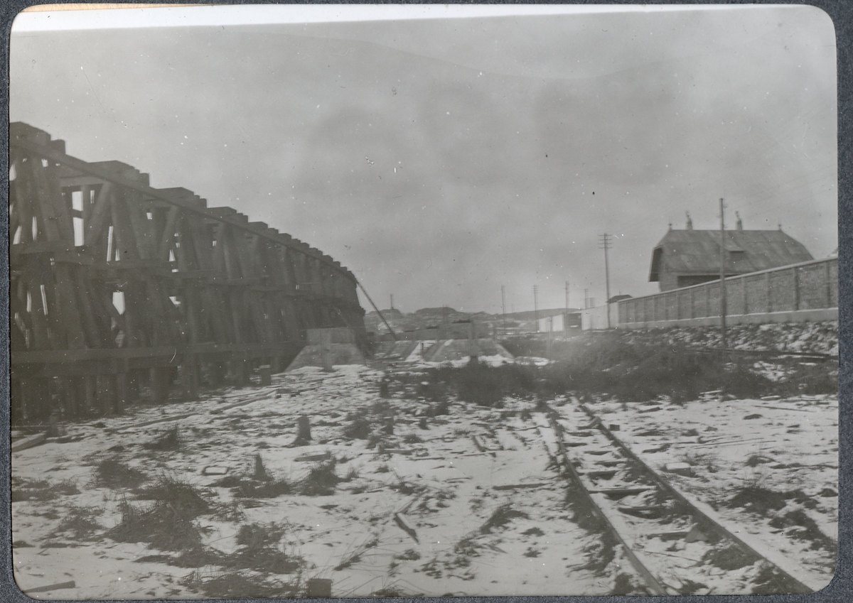 Titel: Album med fotografier från Bohusbanan. Fundament för framtida permanenta viadukt.