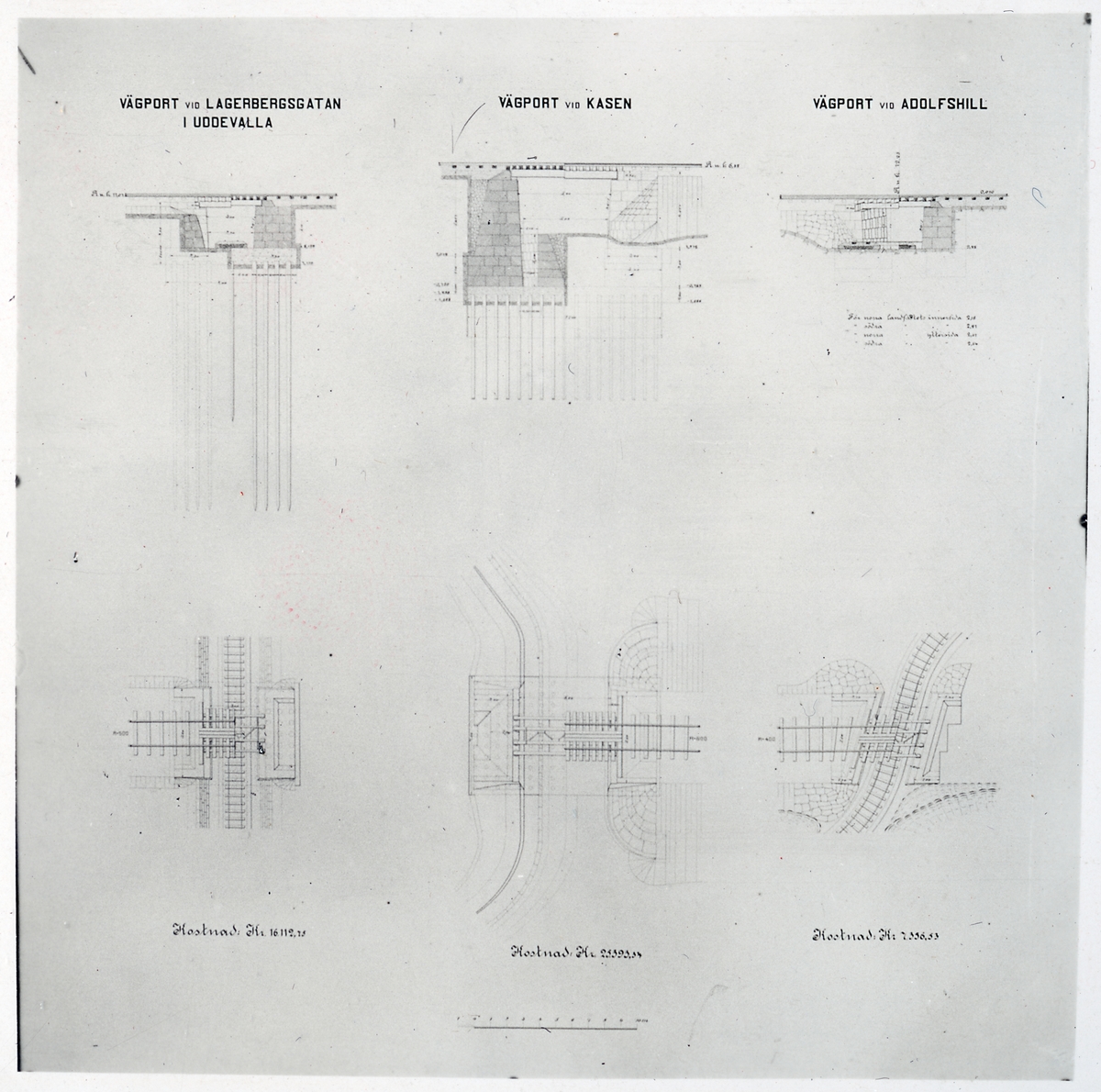 Vägport vid Lagerbergsgatan i Uddevalla samt vid Kasen och Adolfshill.