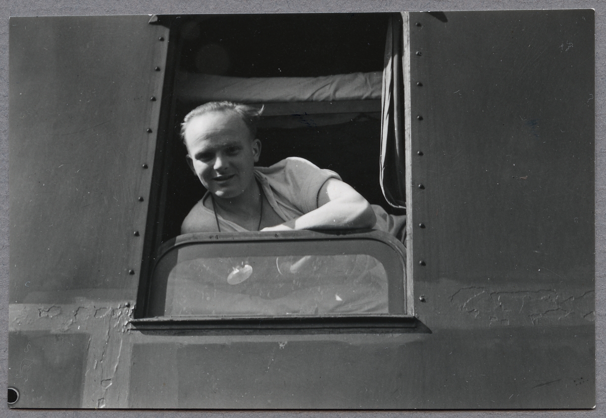 Titel: Skadad tysk soldat ombord på tåg i Hallsberg.