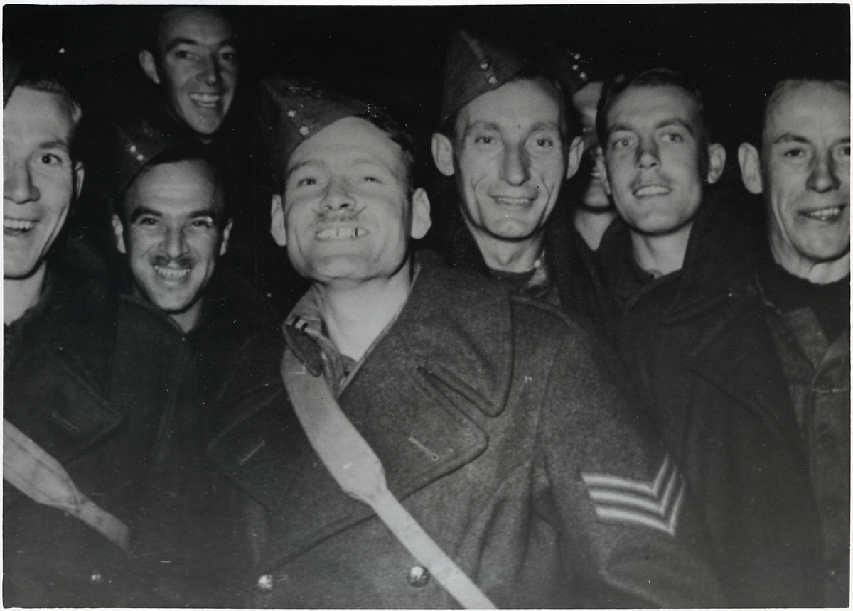 Engelska krigsfångar ilandstigna i Trelleborg, på väg mot utspisning i järnvägsvagnarna.