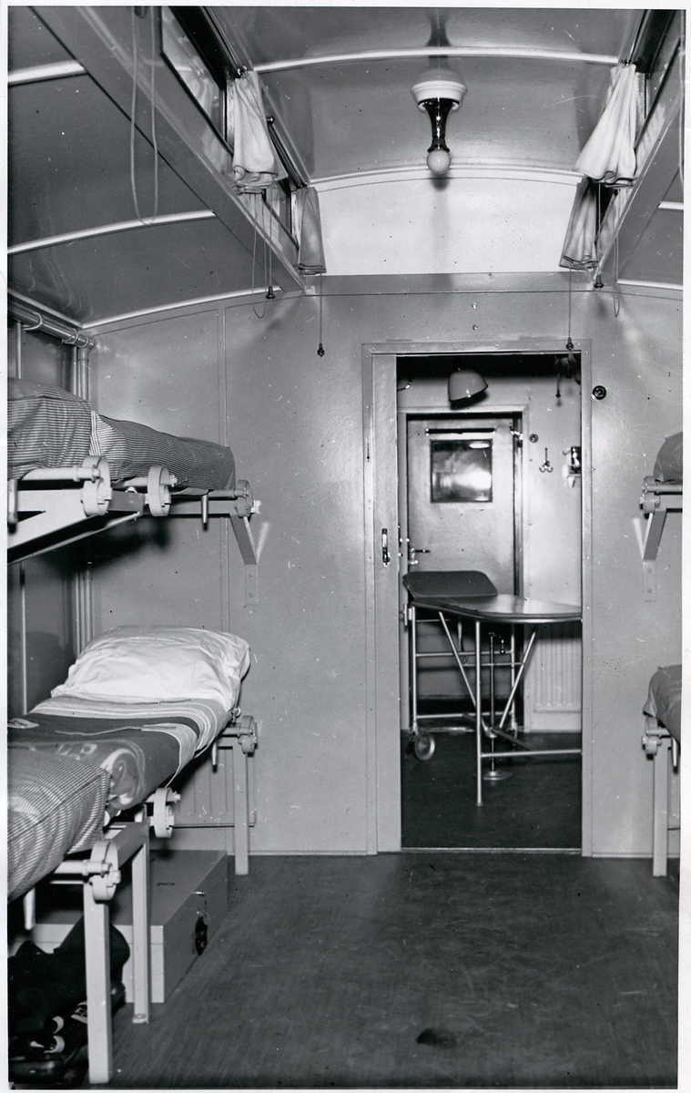 Titel: Interiör från utställningståget "SJ i försvarets tjänst". Ambulanståg.