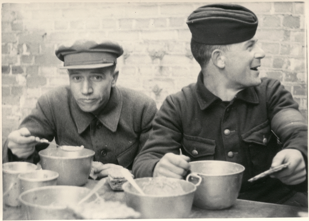 Titel: Första tåget med ryska krigsfångar på linjen mellan Narvik och Karlshäll vid andra världskrigets slut.