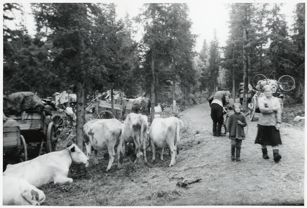 Finska flyktingar i Haparanda, hösten 1944. Resgods och boskap.