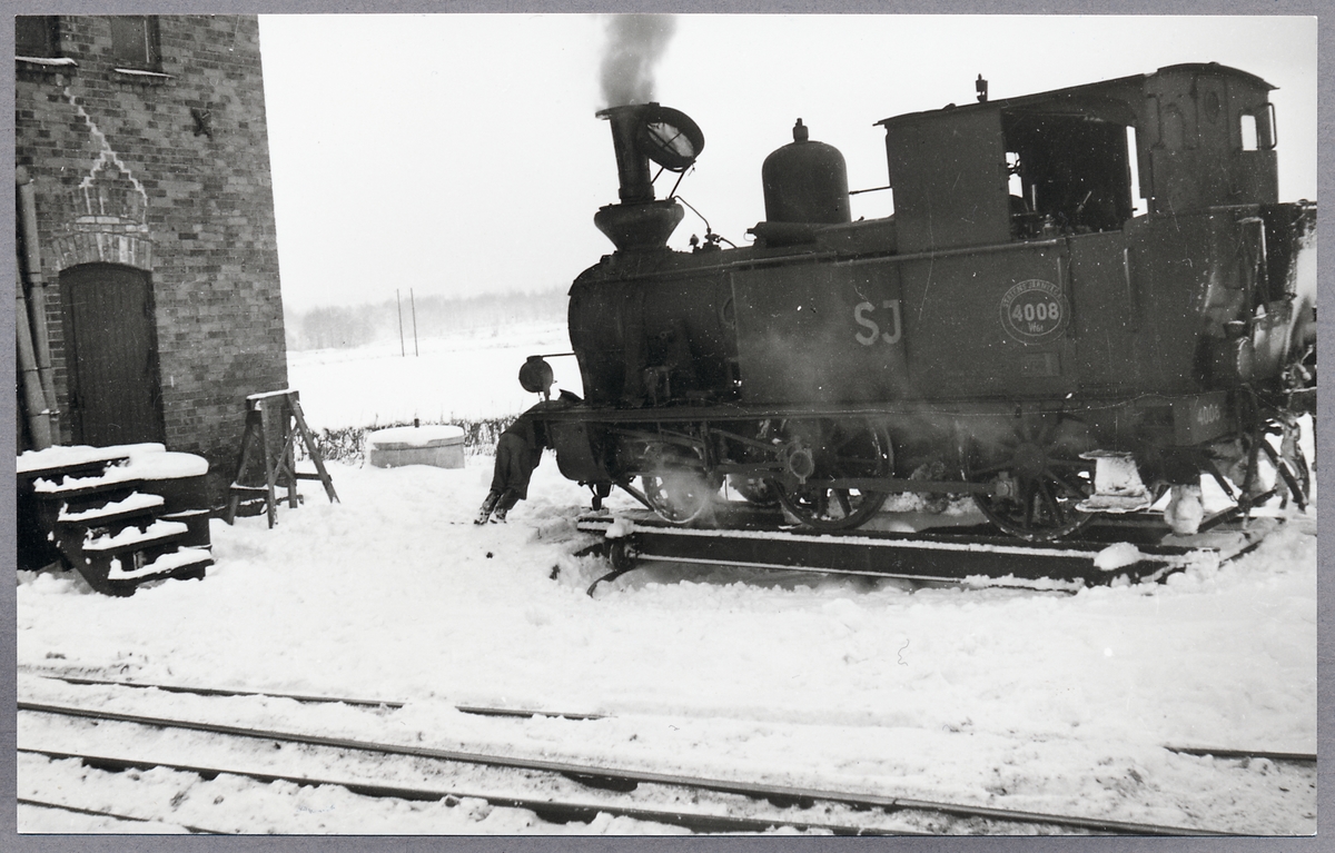 Lokvändning i Sandbäck, sista tåget till Olofström innan nedläggningen. Statens Järnvägar, SJ W6t 4008.