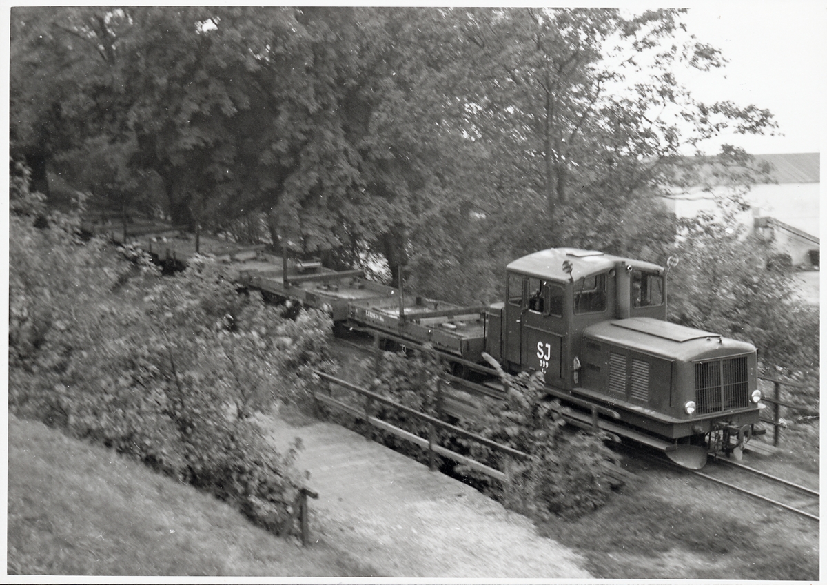 Statens Järnvägar, SJ Z4p 399 och SJ Nnp på väg uppför lutningen i Palissaderna i Visby.