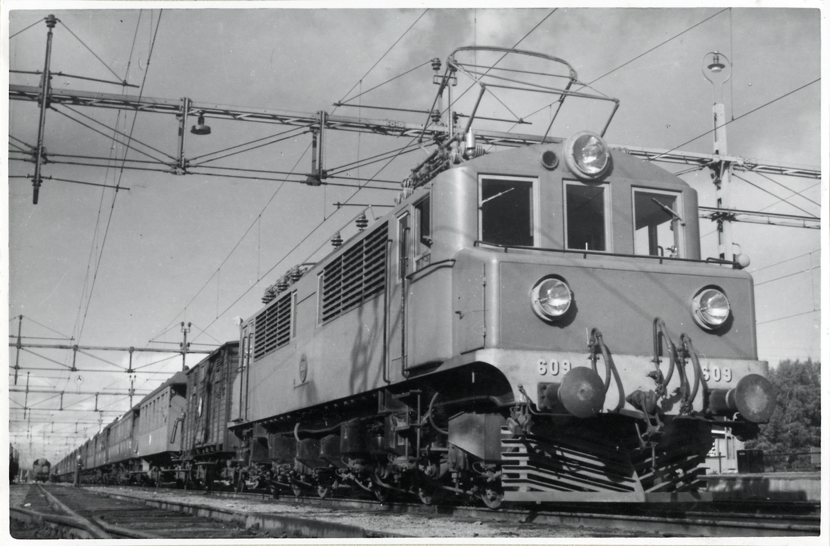 Persontåg vid Vännes station, draget av Statens järnvägar SJ M 609.