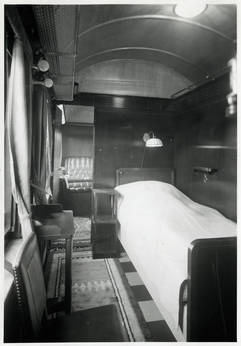 Sovrummet i Kung Gustaf V:s vagn. Statens Järnvägar, SJ Ao3 2904.