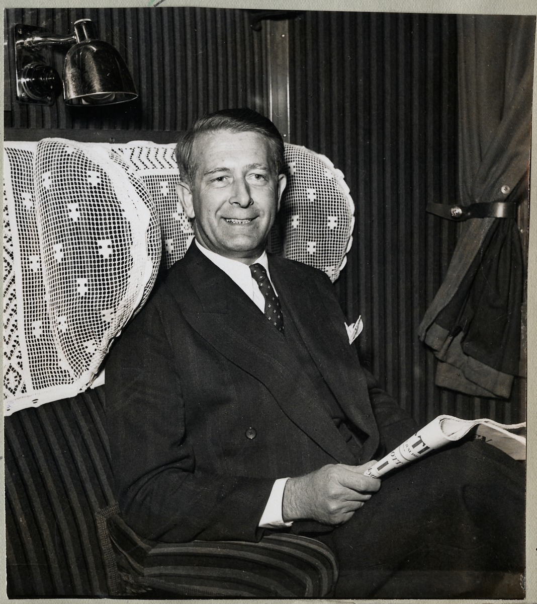 Dåvarande handelsminister Bertil Ohlin i personvagnskupé. SJ Bo4. Statens Järnvägar.