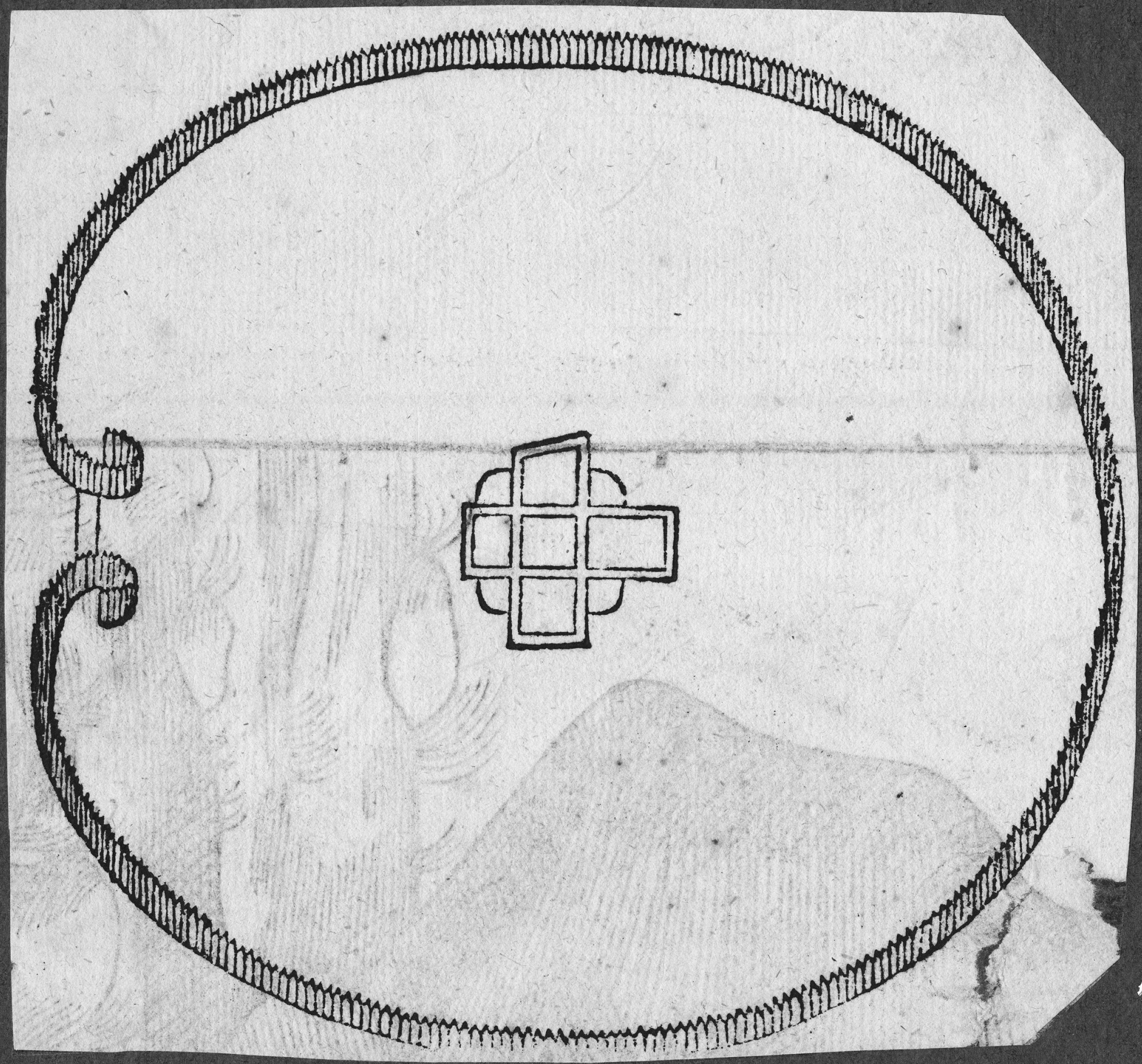 Situationsplan, ur Monumenta Uplandica av Peringskiöld, sid. 152. Efter Atlantica.