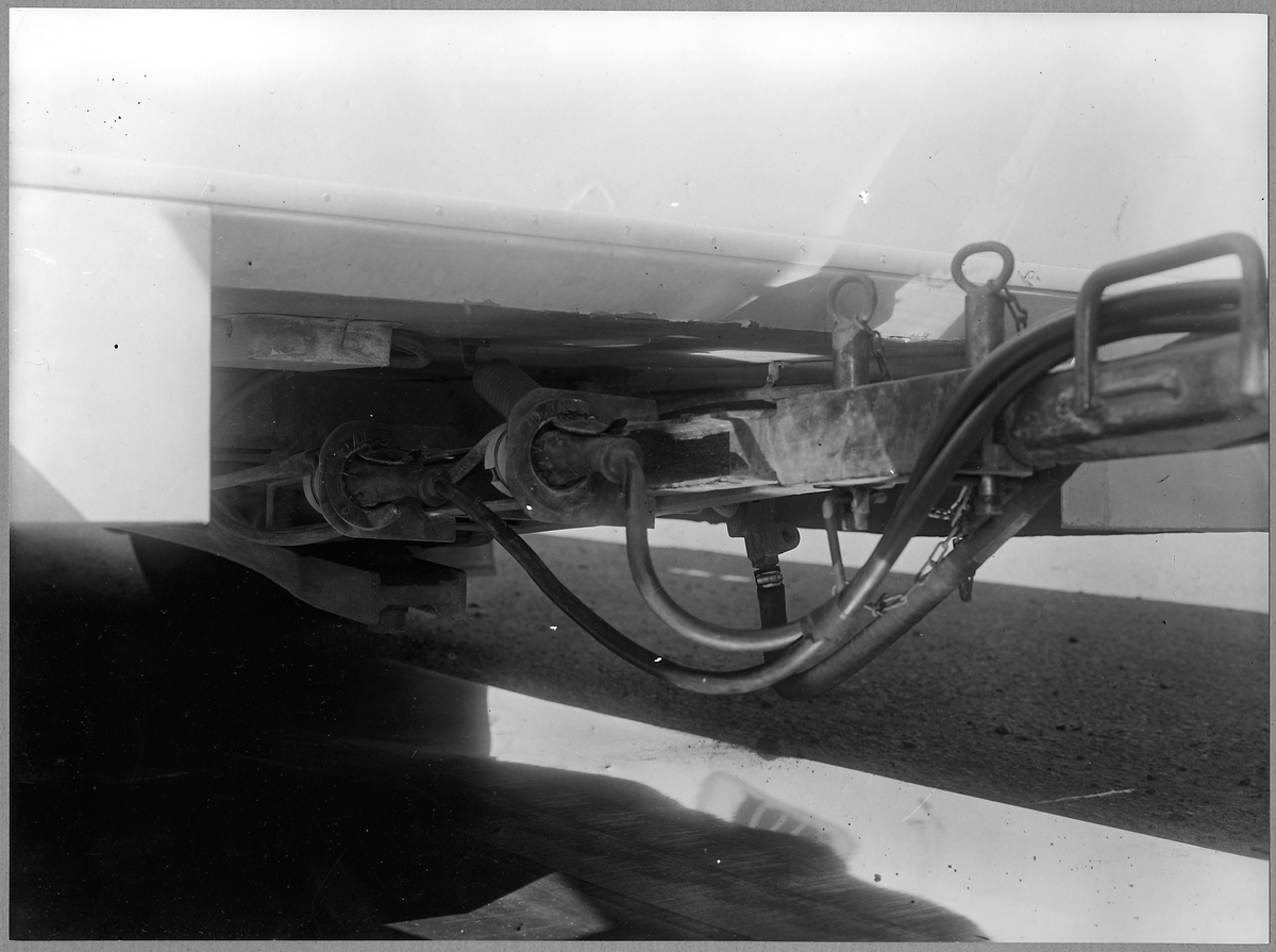 Scarfenbergskoppling mellan buss och personsläpvagn Stockholm-Roslagens Järnväg, SRJ.