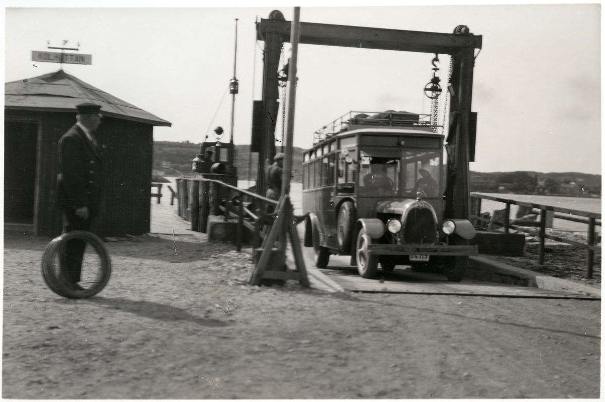 Statens Järnvägar, SJ buss nr 12 lämnar motorfärjan i Kolhättan.