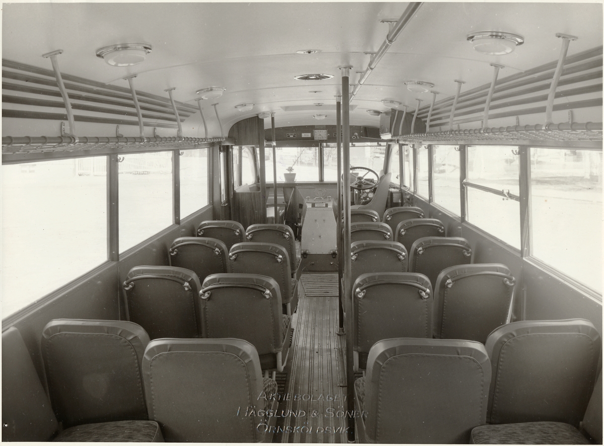 Interiören ombord på Statens Järnvägar, SJ Buss 557, ursprungligen Varberg-Borås-Herrljunga, VBHJ Buss.