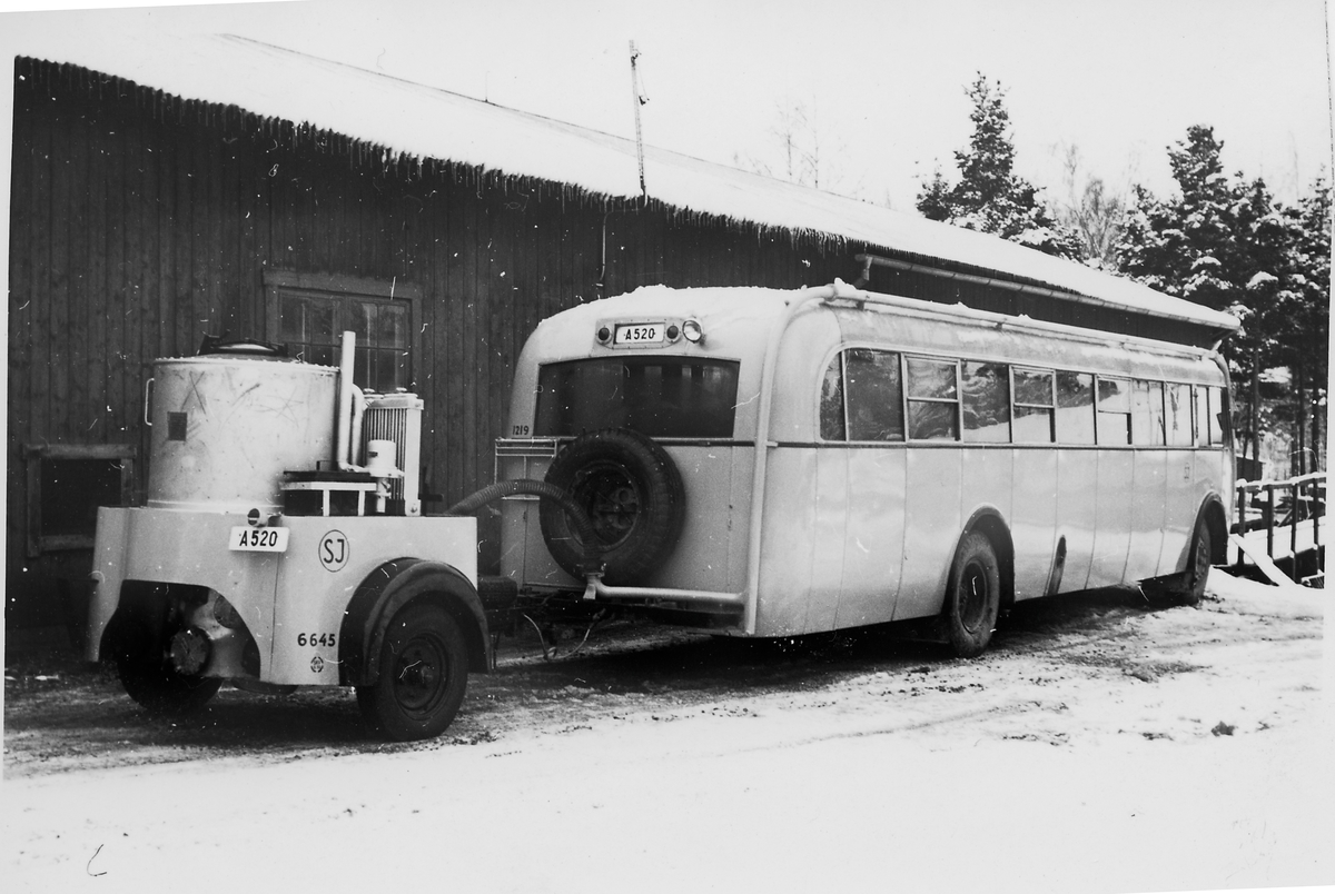 Titel: Statens Järnvägar SJ buss 1219 med gengasaggregat. SJ släpvagn 6645.