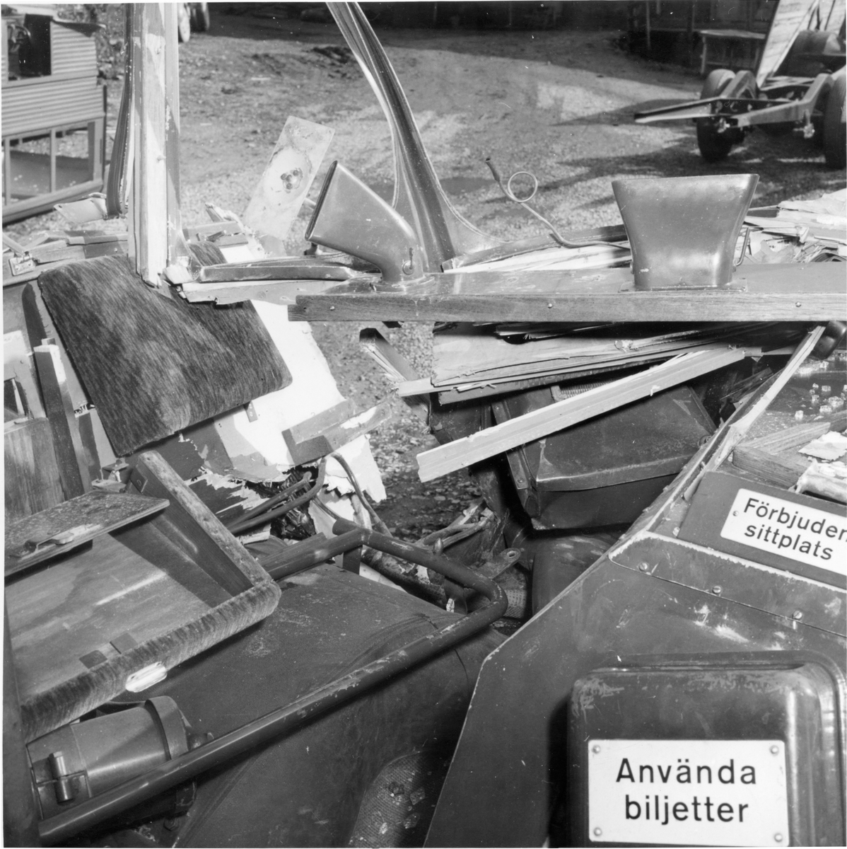 Krockskadad Statens Järnvägar, SJ buss 1348 väntar på reparation.
