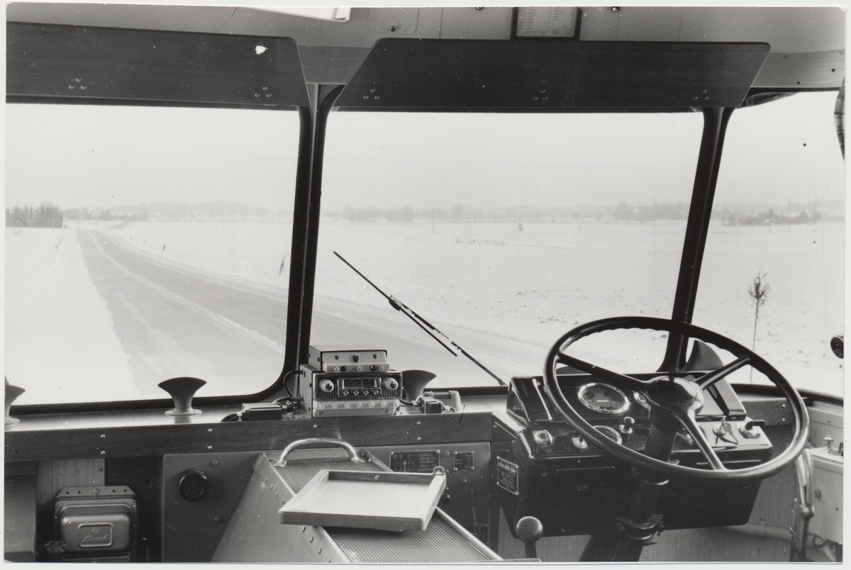 Statens Järnvägar, SJ buss 2561. Interiörbild förarplats.
