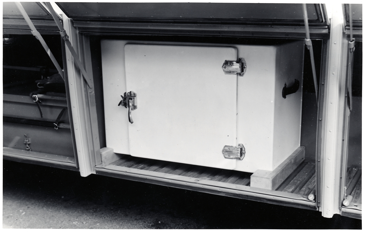 Titel: Skåp i förvaringsutrymmet på en buss.