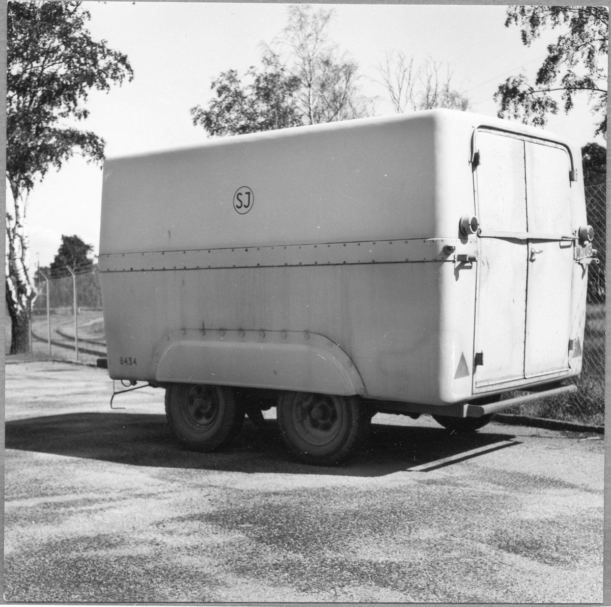 Statens Järnvägar, SJ släpvagn 8434 med dubbla hjulpar.