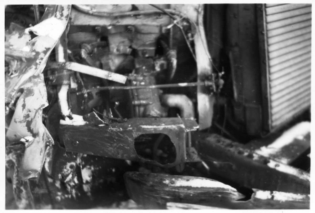 Titel: Detaljer på Statens Järnvägars krockskadade buss.