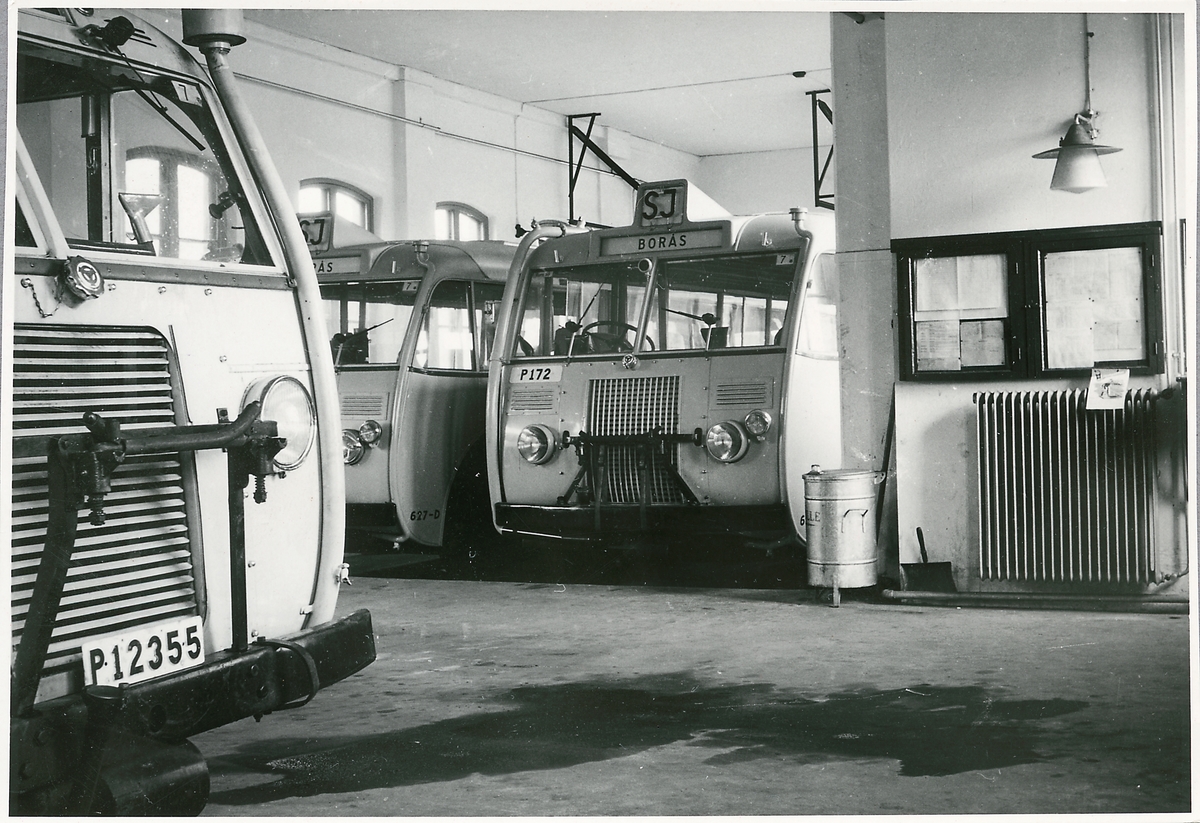 Statens Järnvägar, SJ buss 437, 626 och 627-D i garage.