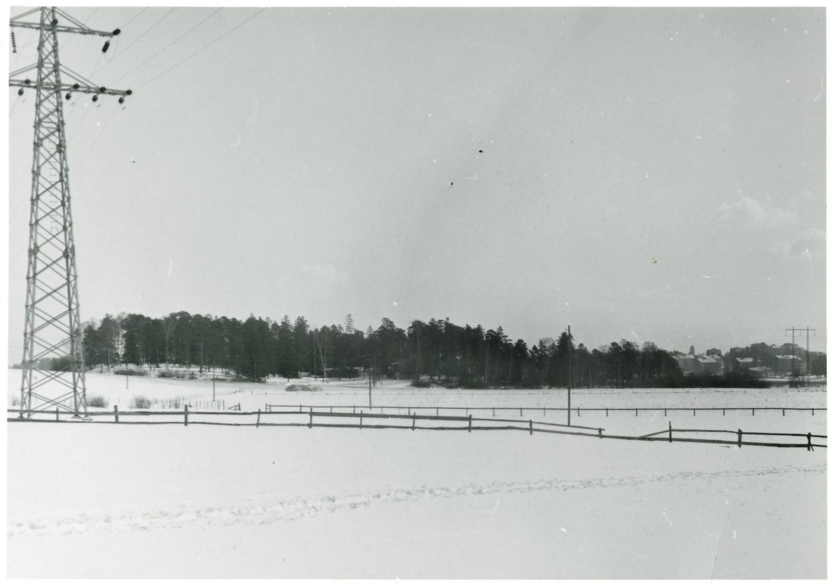 Titel: Kraftledningsstolpe vid planerat verkstadsområde.
