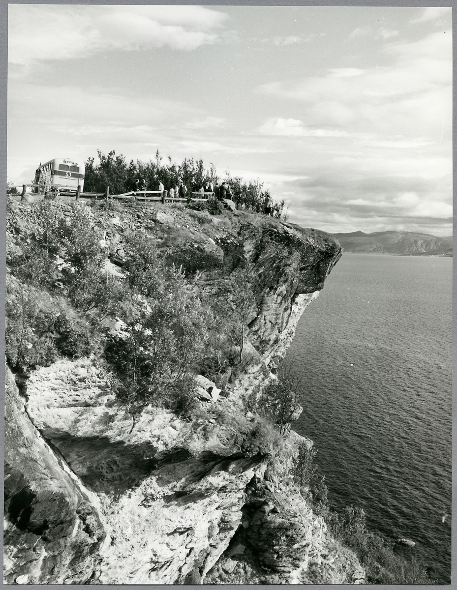 Statens Järnvägar, SJ buss 1877 vid utsiktsplats över Altafjorden.
