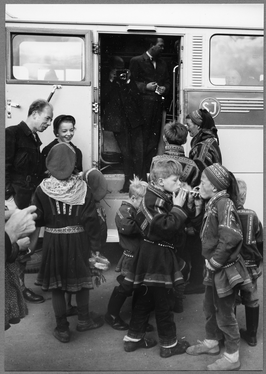 Resande med Statens Järnvägar, SJ buss 1877 bekantar sig med samebarn på Nordkalotten.