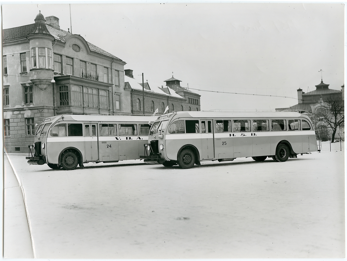 Titel: Två stycken bussar; VBA 24 samt HSB 25 parkerade.
