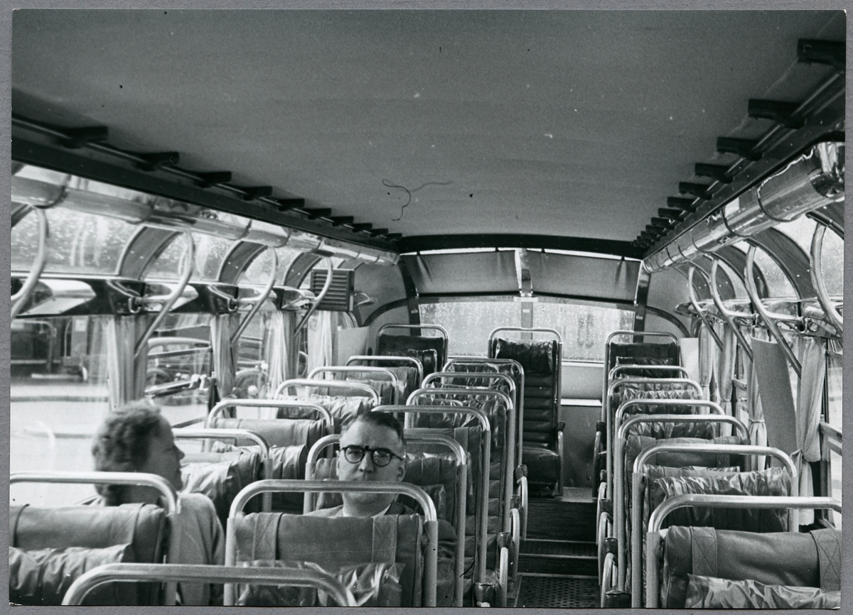 Titel: Två passagerare i en buss.