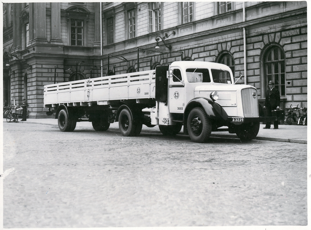 Statens Järnvägar, SJ lastbil 3053 och SJ släp 2580.