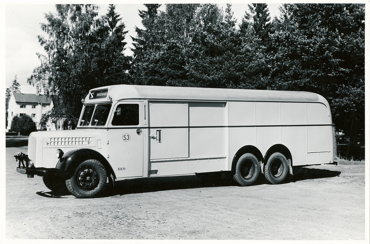 Statens Järnvägar, SJ Godsbuss 3371. Scania-Vabis LS 65 med kaross från SKV i Katrineholm. Levererad 1952 till linjen Övertorneå - Pajala.
