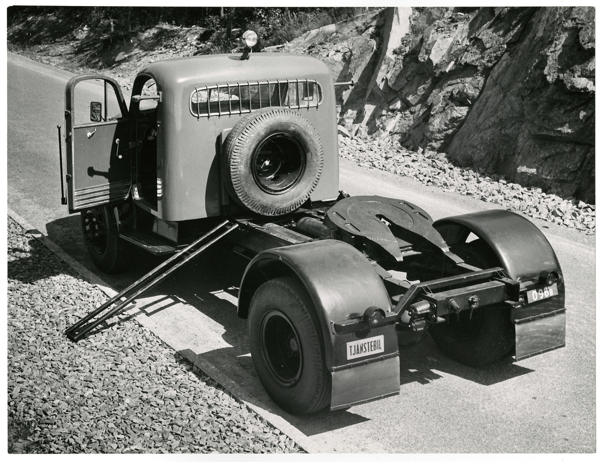 Titel: Statens Järnvägar, SJ Lastbil 6199. Volvo L385 Viking trailerbil.