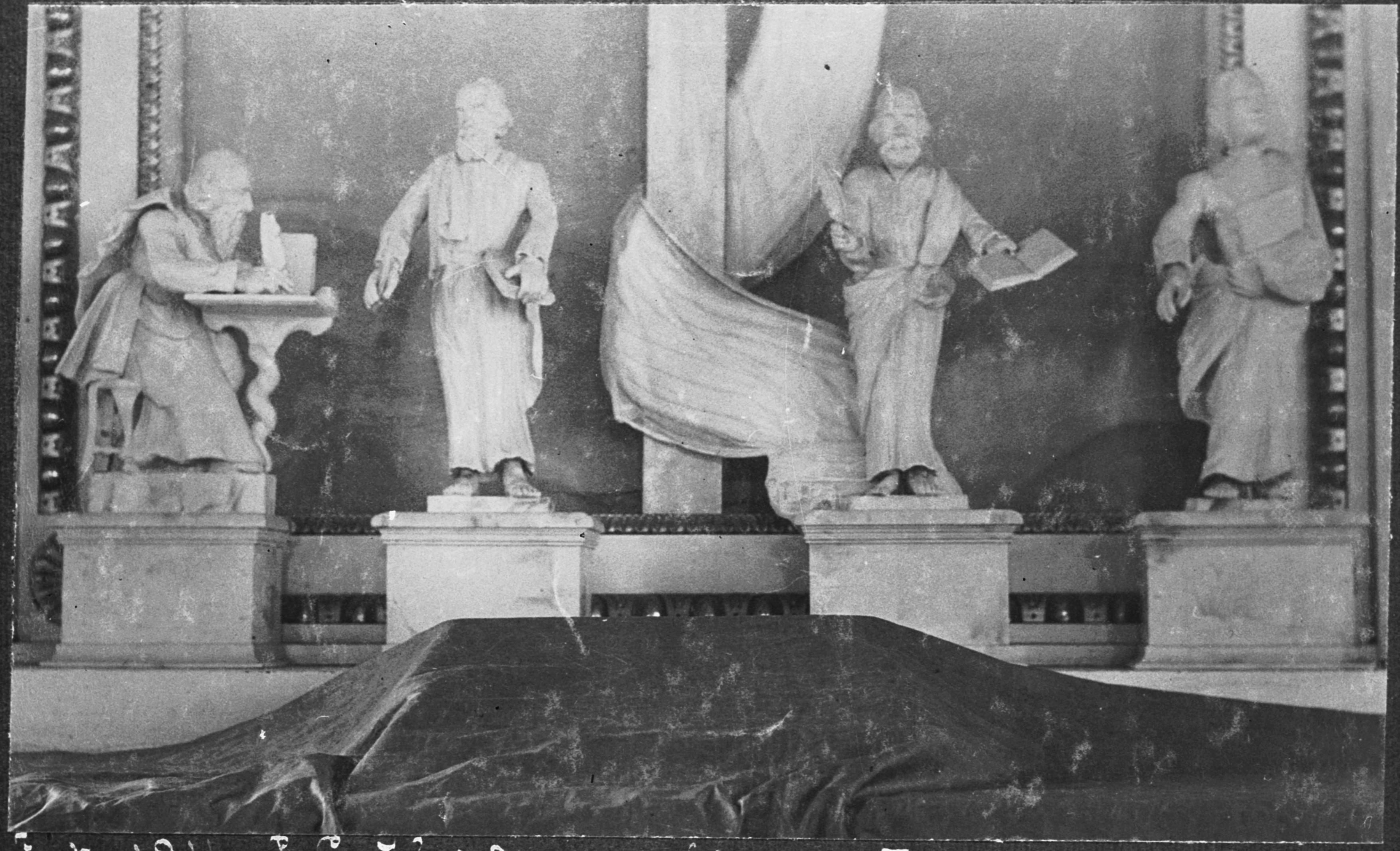 Evangelistfigurer snidade i trä, Mattehus, Markus, Lukas och Johannes.