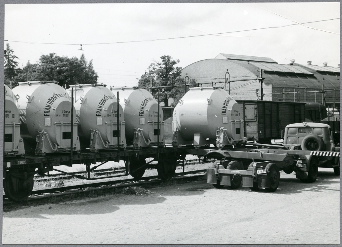 Statens Järnväg, SJ Oubhl 79628, lastning av storbehållare.