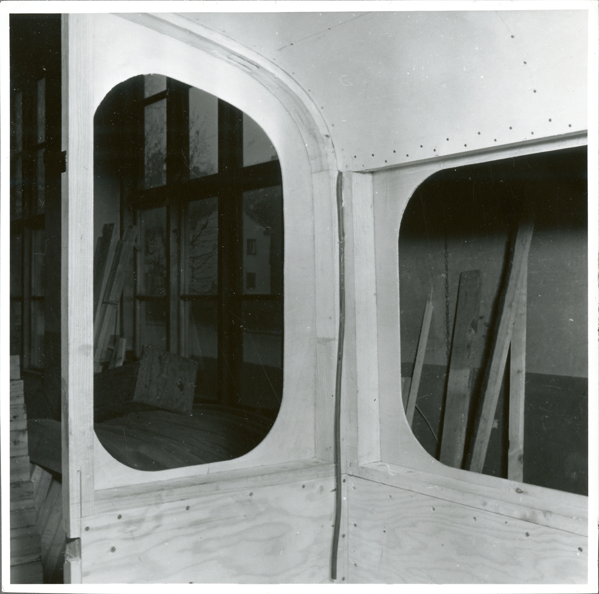 Titel: Del av karossen på den så kallade "snöbussen", för Statens Järnvägar tillverkad av Svenska Karosseriverken i Katrineholm.