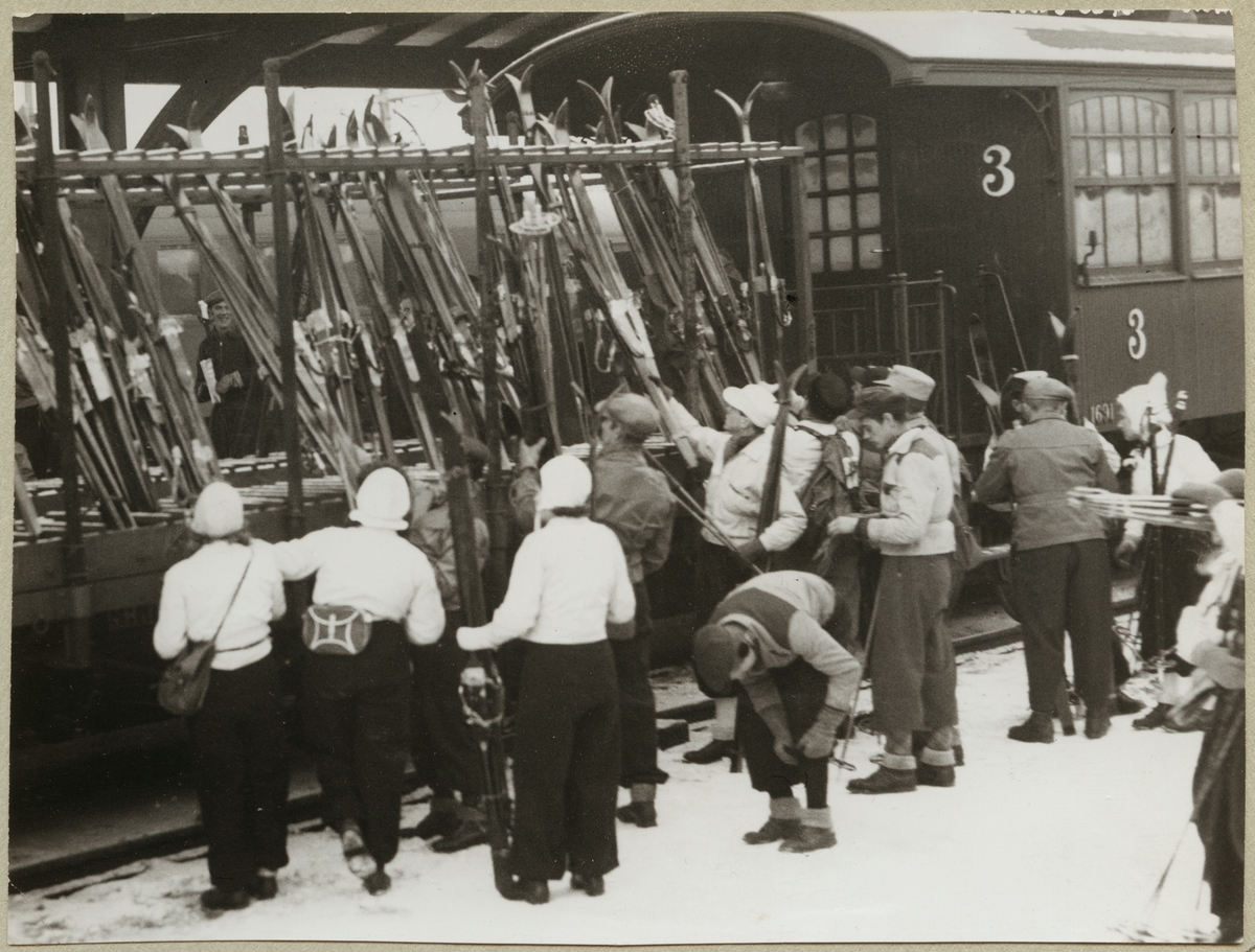 Resande lastar av skidor efter resa från Göteborg.