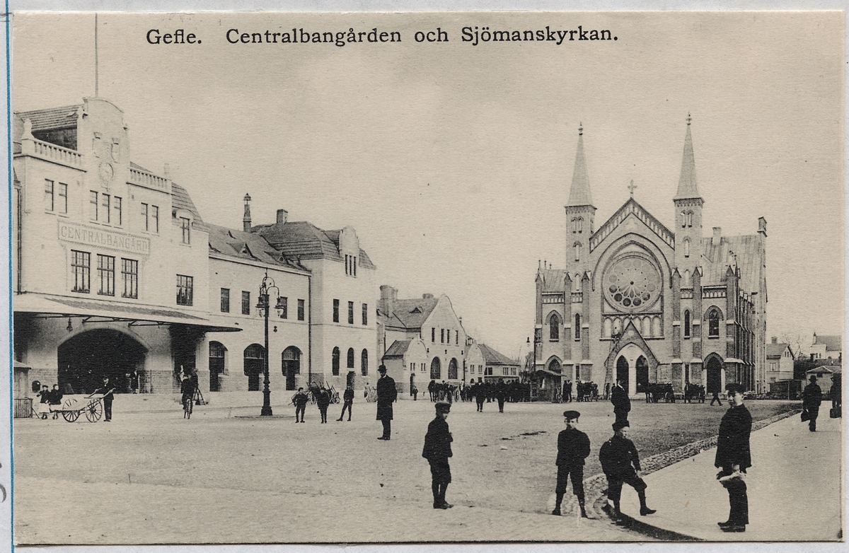 Titel: Centralbangården och Sjömanskyrkan i Gävle.