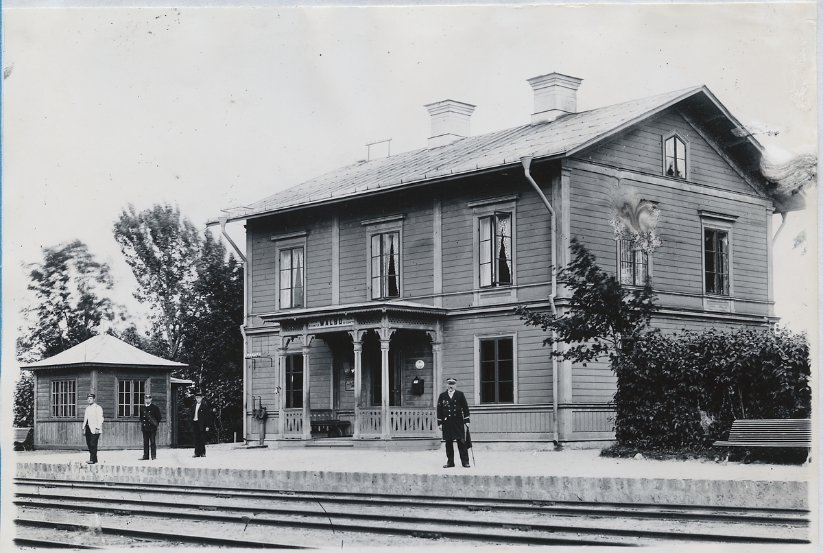 Titel: Valbo järnvägsstation i slutet av 1890-talet.