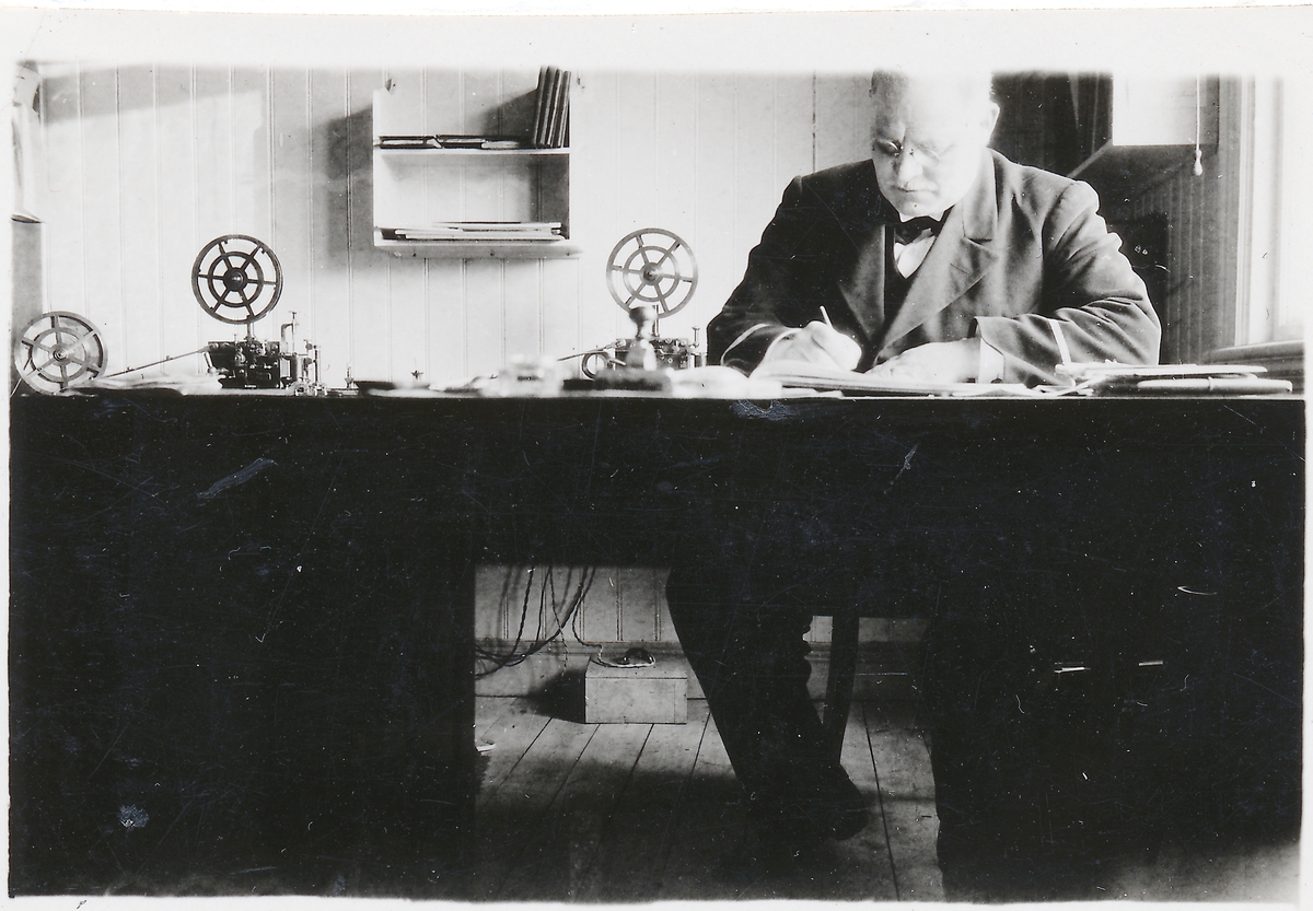 Titel: Repbäcken station. Stationsmästare Åsbrink på expeditionen.